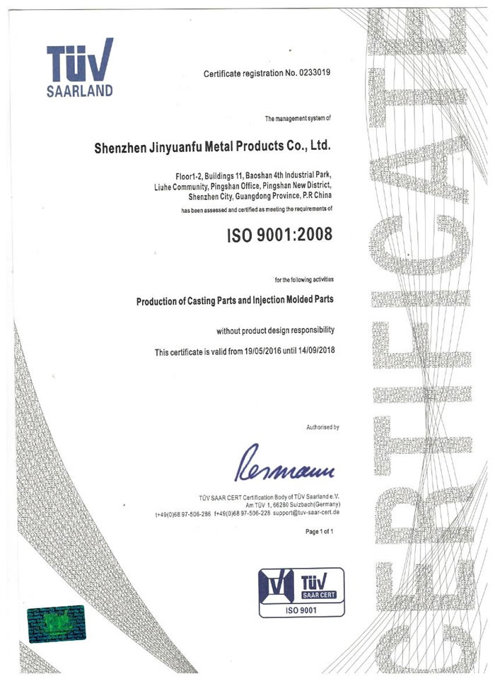 深圳市金源福五金制品有限公司成立于2003年。公司擁有8000多平方米生產(chǎn)廠地、開發(fā)與管理精英人才、技術專業(yè)、設備精良、交通便利、服務周全、具體設計、開發(fā)、制模、出樣、生產(chǎn)到成品出貨一體化模式生產(chǎn)廠家。已通過ISO9001:2008ISO1440/TS16949:2009國際質(zhì)量體系認證。專業(yè)生產(chǎn)鋅合金壓鑄、鋁合金壓鑄產(chǎn)品、汽車配件、汽車后視鏡支架、車載導航散熱器、LED散熱器、LED燈罩、數(shù)碼電子五金結(jié)構件、家具五金裝飾件、標牌(LOGO)等五金壓鑄產(chǎn)品。